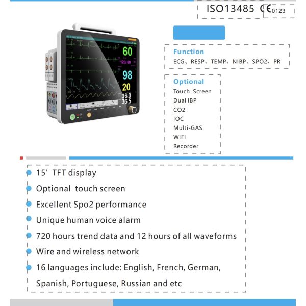 6 parametersECG,HR/PR,SPO2,NIBP,RESP, TEMP